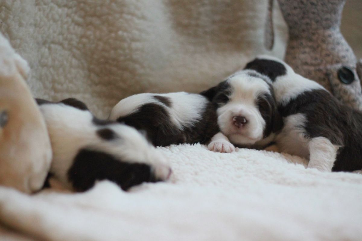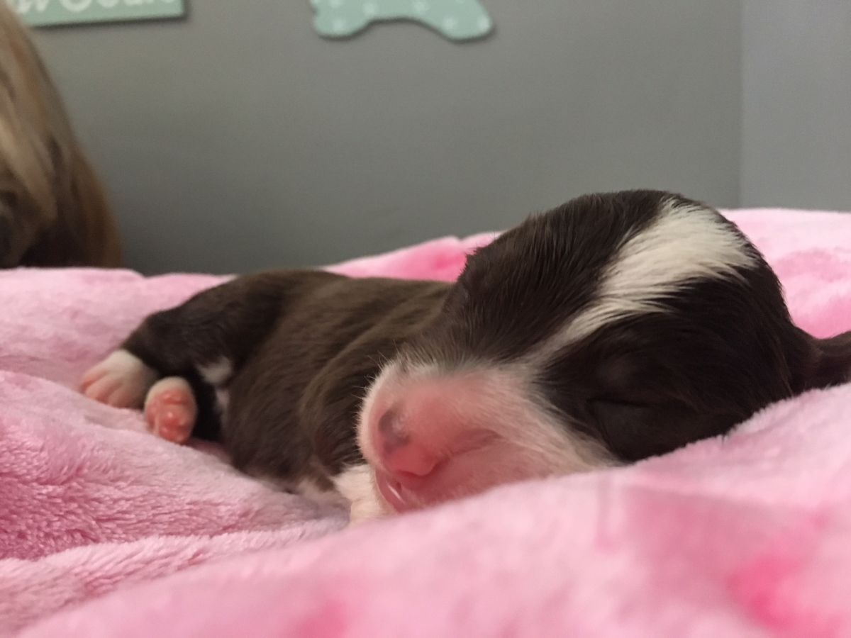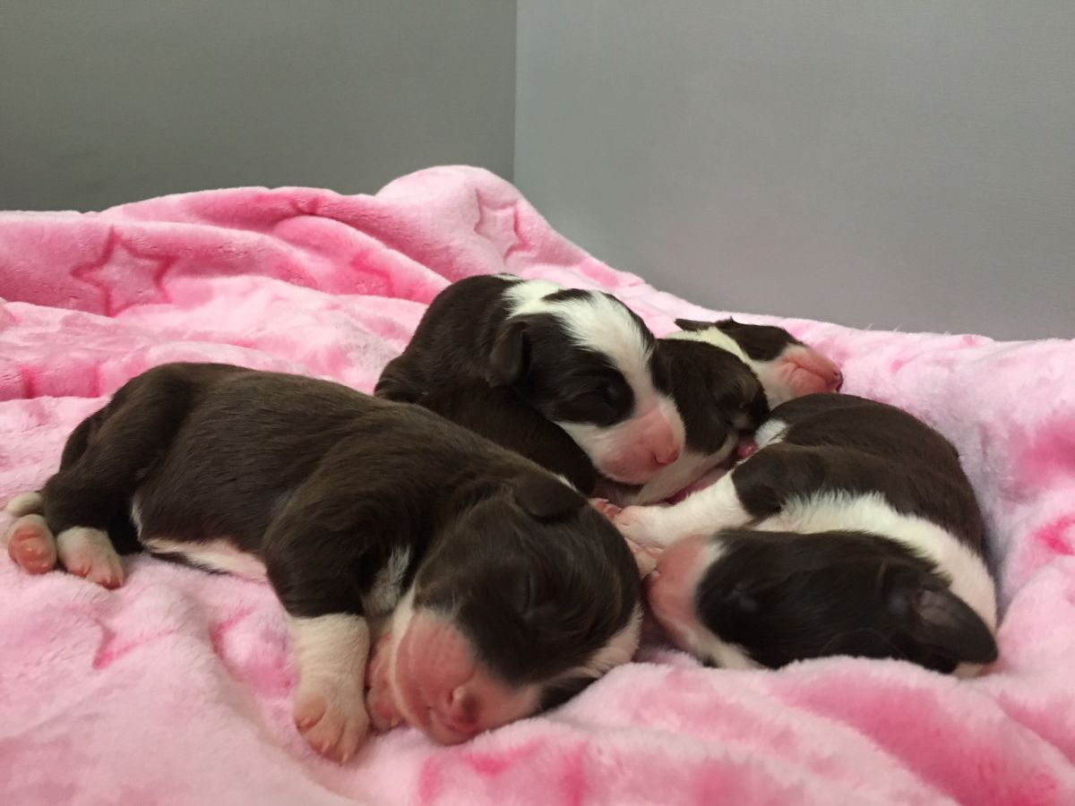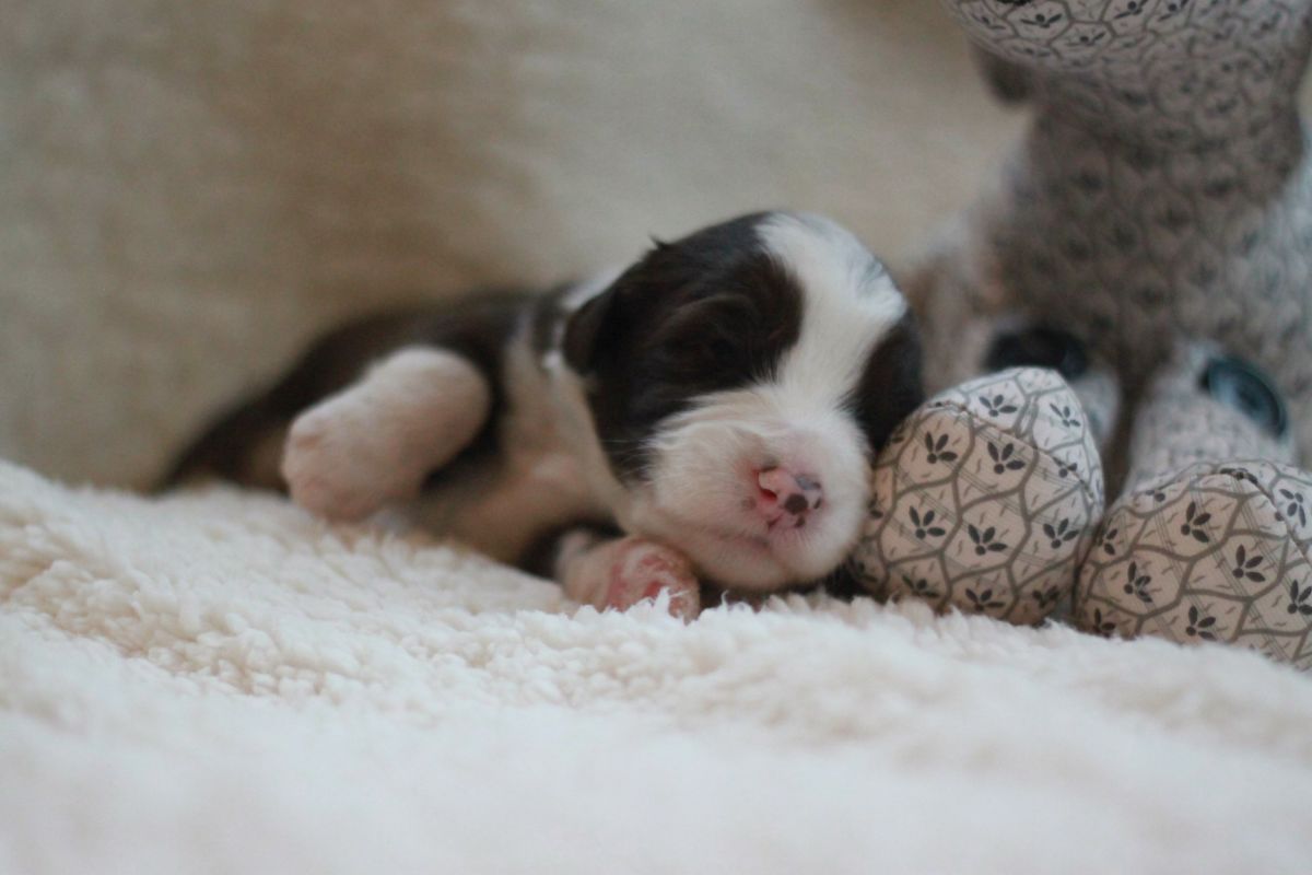 Die kommenden 7 Tage gibt es hier nochmal ordentlich Programm. Die Tierärztin kommt zu impfen und chipen, die Zuchtwartin kommt um die 7 nochmals zu begutachten und dann ihr okay zu geben, wir üben Halsband tragen, bürsten muss auch nochmal sein und und und. Bißchen komisch ist das immer mit der letzten Woche, ein fröhliches und ein weinendes Auge. Einige bleiben ja noch etwas länger … das ist dann ein Abschied, der aufgeteilt ist (macht es nicht besser). Wir wissen aber, dass die neuen Familien schon sehnsüchtig warten und es wohl kaum erwarten können.