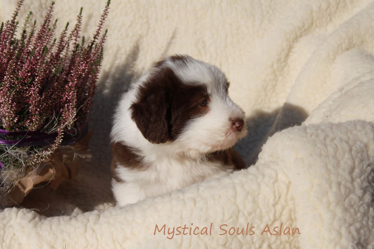 Sie sind so niedlich und richtig zufriedene kleine Bärchen. Die Augen gehen auf und die ersten Schritte werden probiert. Sammy kümmert sich voller Hingabe um die Lütten und Jamil verbringt jetzt auch schon mal Zeit, im sicheren Abstand, vor der Welpenkiste. Aliyah ist nach wie vor völlig begeistert und kann es kaum erwarten endlich zu spielen. Alles in allem ist es unglaublich harmonisch mit unseren kleinen Mysticals.