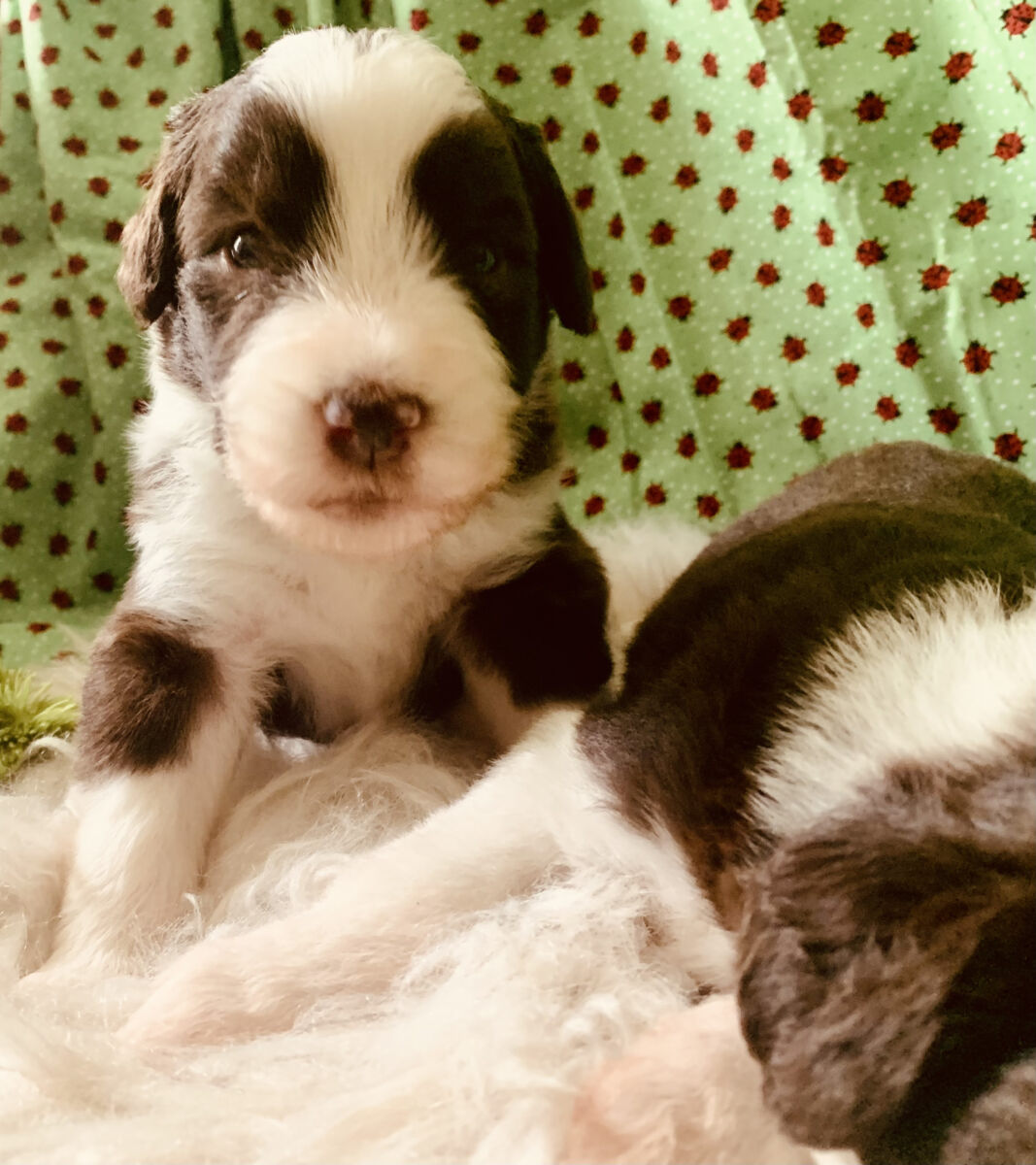 Die Zuchtwartin war in dieser Woche auch zu Besuch und war sehr begeistert von unseren Schätzchen. Es sind jetzt wirklich schon kleine Hunde und über das Gewicht schweigen wir uns aus .. 🙂 Alle haben nun ihren offiziellen Namen.