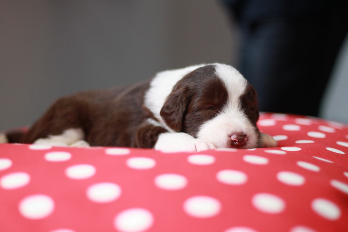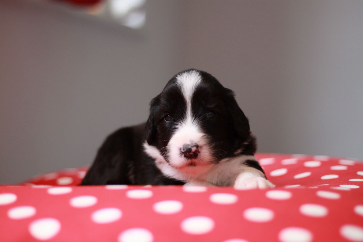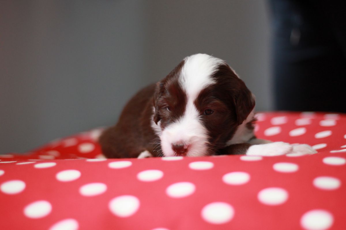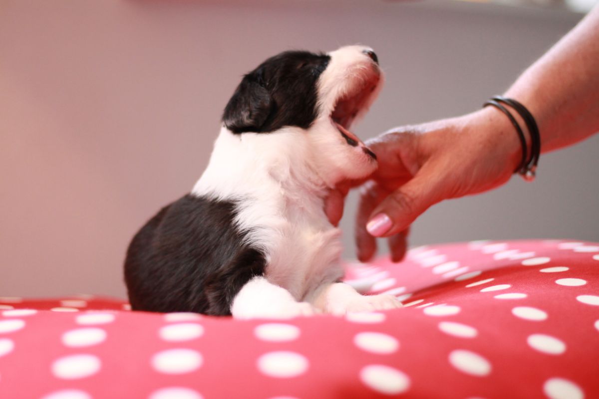Die Zuchtwartin war in dieser Woche auch zu Besuch und war sehr begeistert von unseren Schätzchen. Es sind jetzt wirklich schon kleine Hunde und über das Gewicht schweigen wir uns aus .. 🙂 Alle haben nun ihren offiziellen Namen.