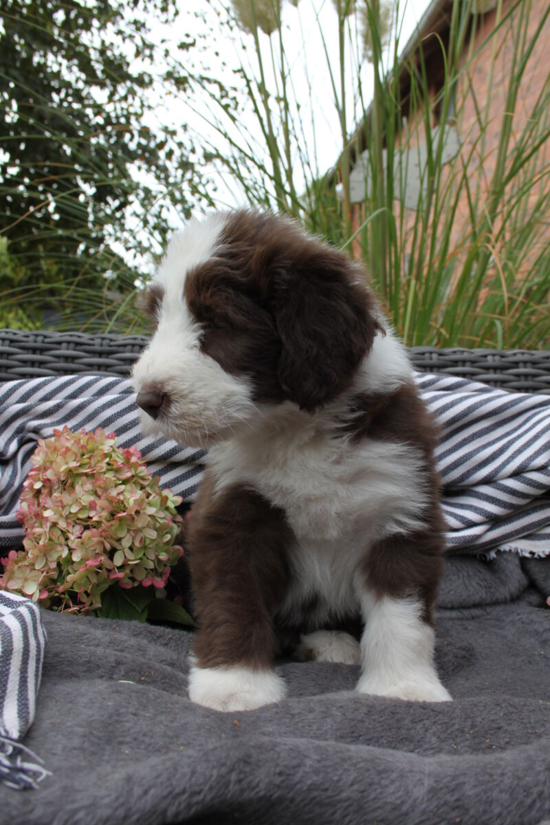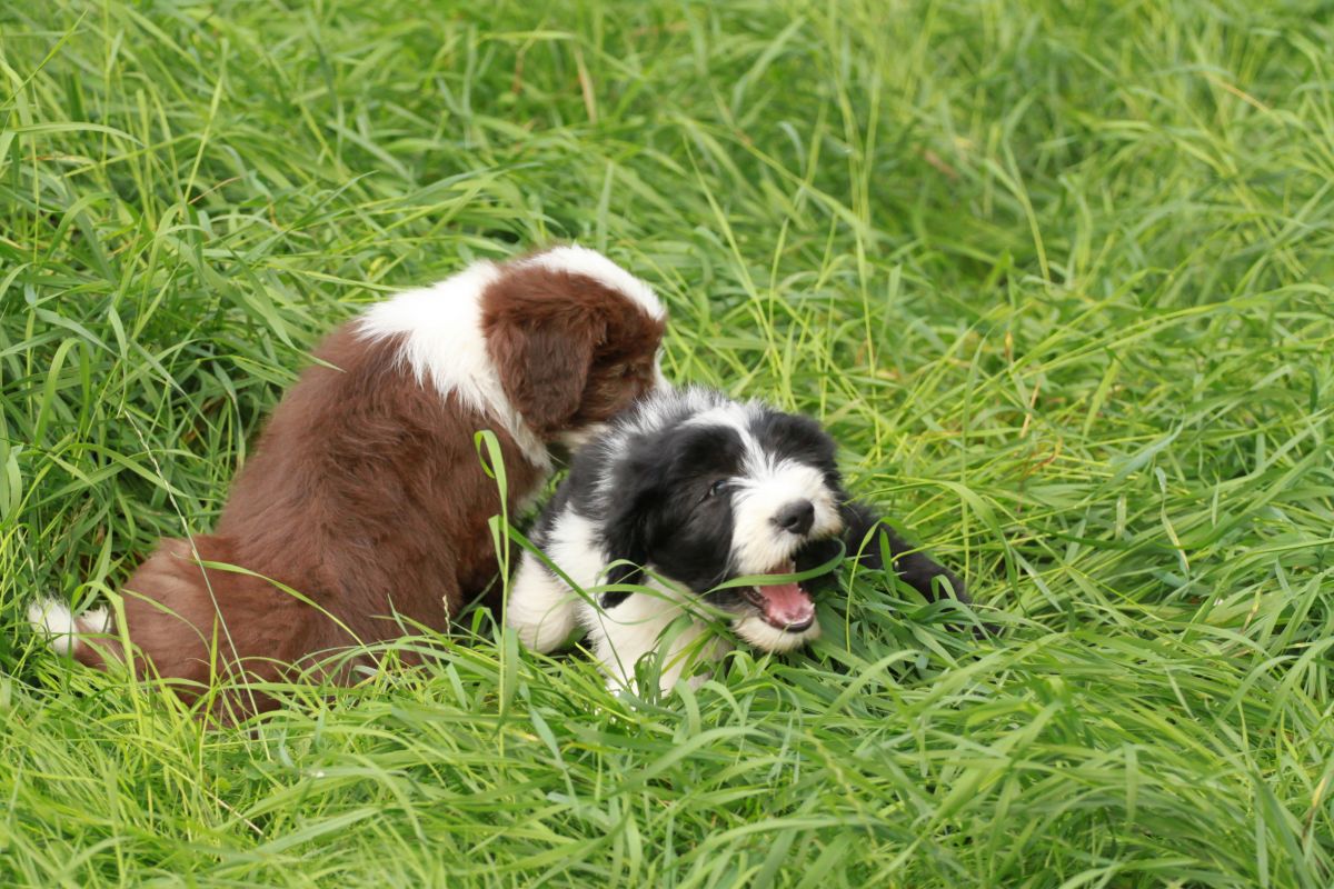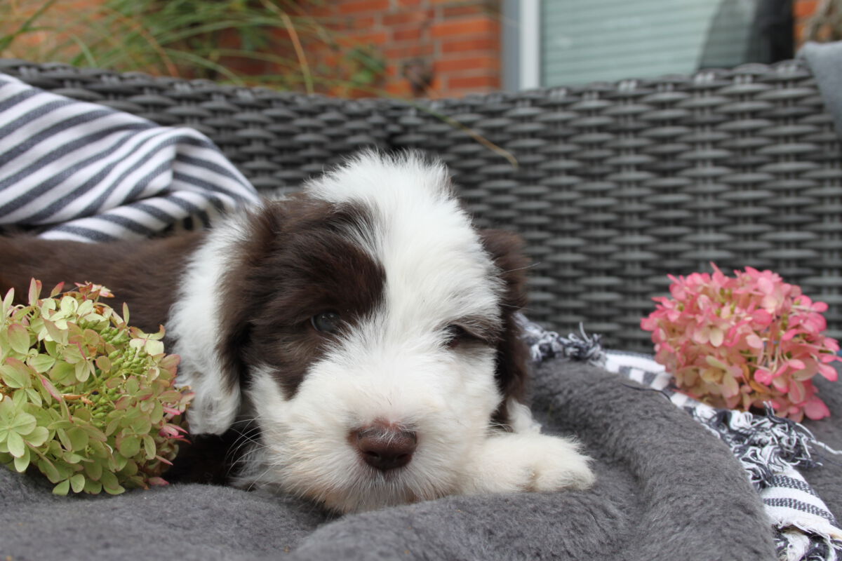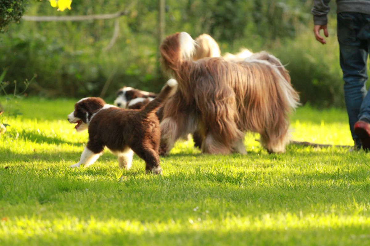 Die kleinen B´chen entwickeln sich prächtig und alle betüddeln die kleine Familie. Man hört aus der Kiste auch schon die ersten Bellversuche, zu witzig.