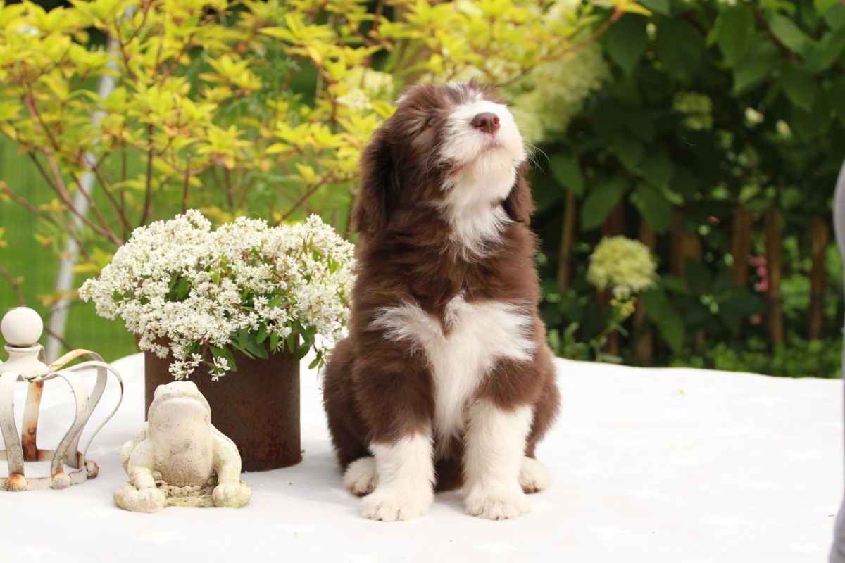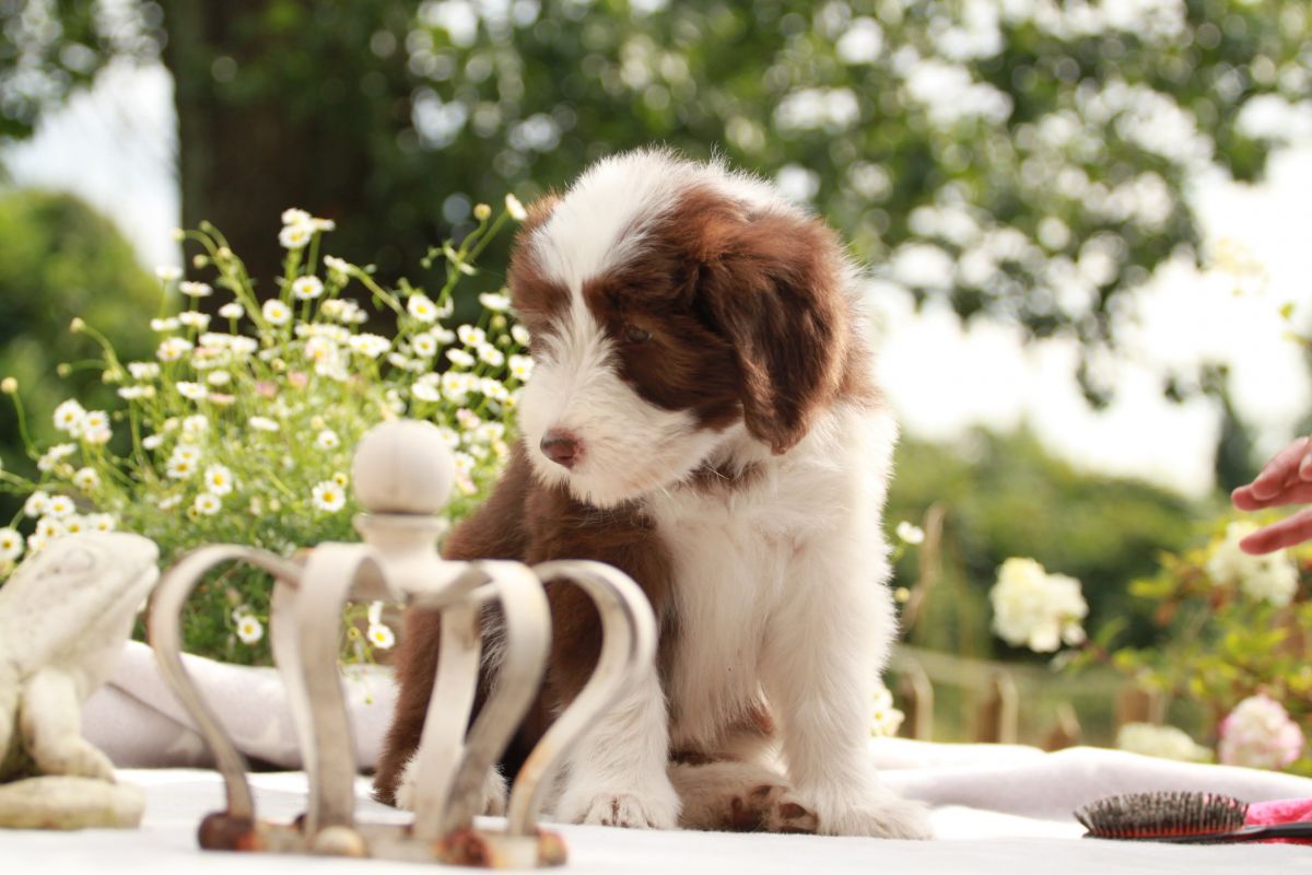 Die kommenden 7 Tage gibt es hier nochmal ordentlich Programm. Die Tierärztin kommt zu impfen und chipen, die Zuchtwartin kommt um die 7 nochmals zu begutachten und dann ihr okay zu geben, wir üben Halsband tragen, bürsten muss auch nochmal sein und und und. Bißchen komisch ist das immer mit der letzten Woche, ein fröhliches und ein weinendes Auge. Einige bleiben ja noch etwas länger … das ist dann ein Abschied, der aufgeteilt ist (macht es nicht besser). Wir wissen aber, dass die neuen Familien schon sehnsüchtig warten und es wohl kaum erwarten können.