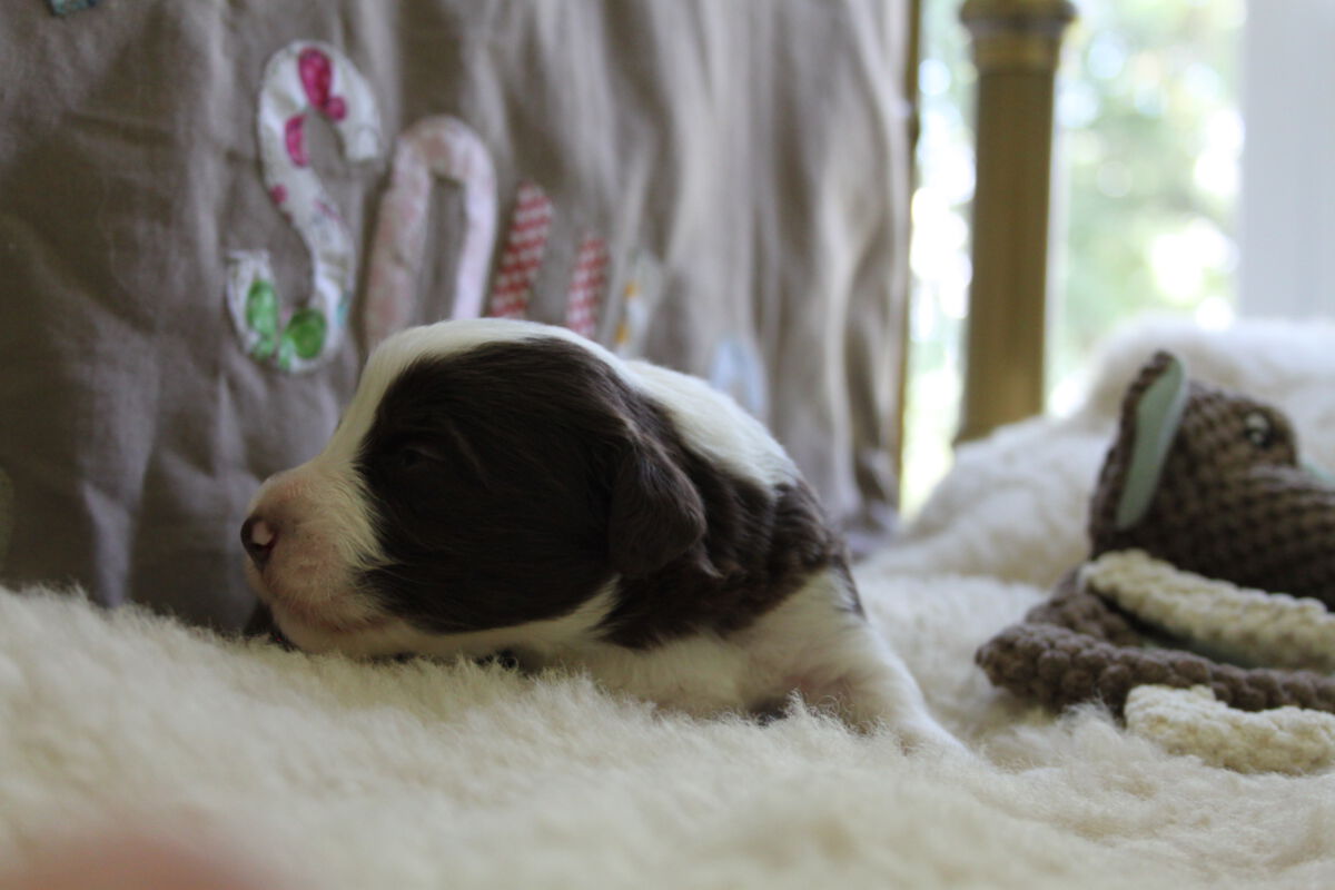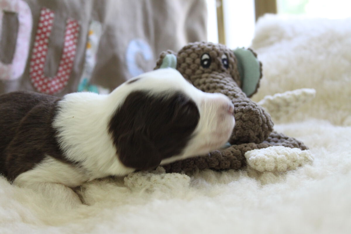 und es ging mal wieder rasend schnell! Unsere kleinen Spätzchen machen sich super gut, alle haben ihr Geburtsgewicht mehr als verdoppelt und die Augen gehen jetzt auch auf. Das ist immer ein besonderer Augenblick, wenn einen so ein kleines Hundekind das erste Mal anschaut. Für mich eigentlich “ der Augenblick“ bei der Aufzucht eines Wurfes.