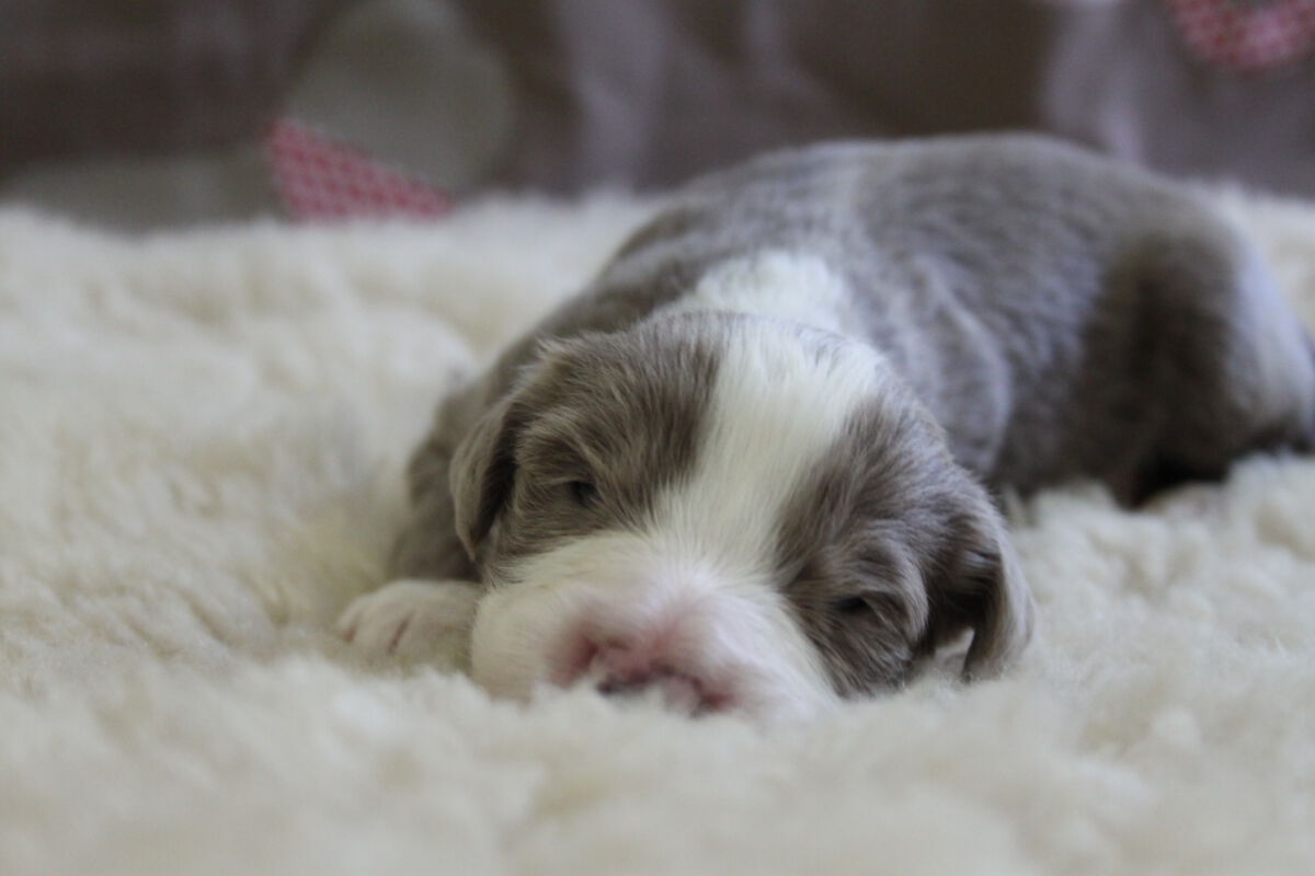 Wie immer sind wir völlig erstaunt, wie die Zeit mit Welpen im Haus rast. Nun sind unsere 5 kleinen Mäuse schon eine Woche alt. Sie entwickeln sich ganz prächtig, nehmen ordendlich zu und schlafen sich groß. Aliyah behütet ihre Kinder den ganzen Tag sehr leibevoll und zuverlässig. Sie liebt es bei ihnen zu liegen und sie zu verwöhnen. Viel gibt es in der ersten Woche nicht zur berichten, daher kommen wir gleich zu den Fotos: