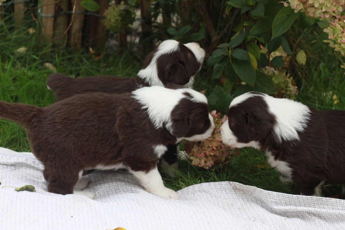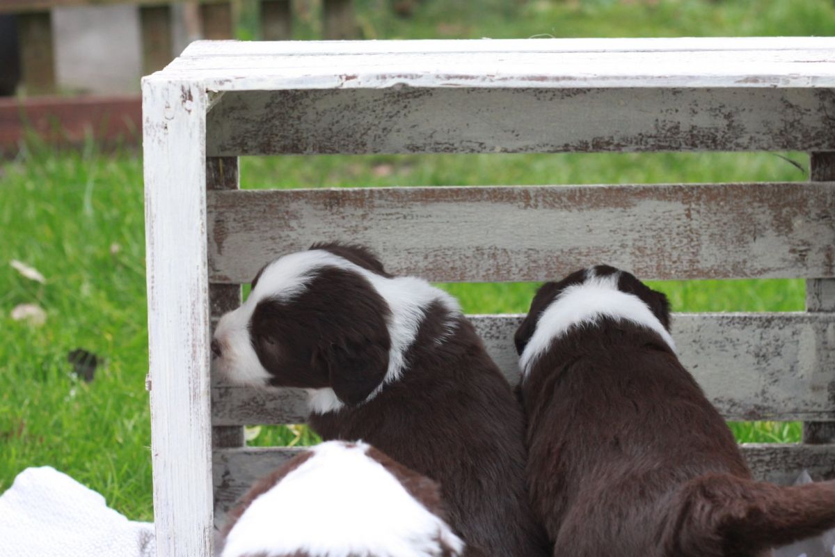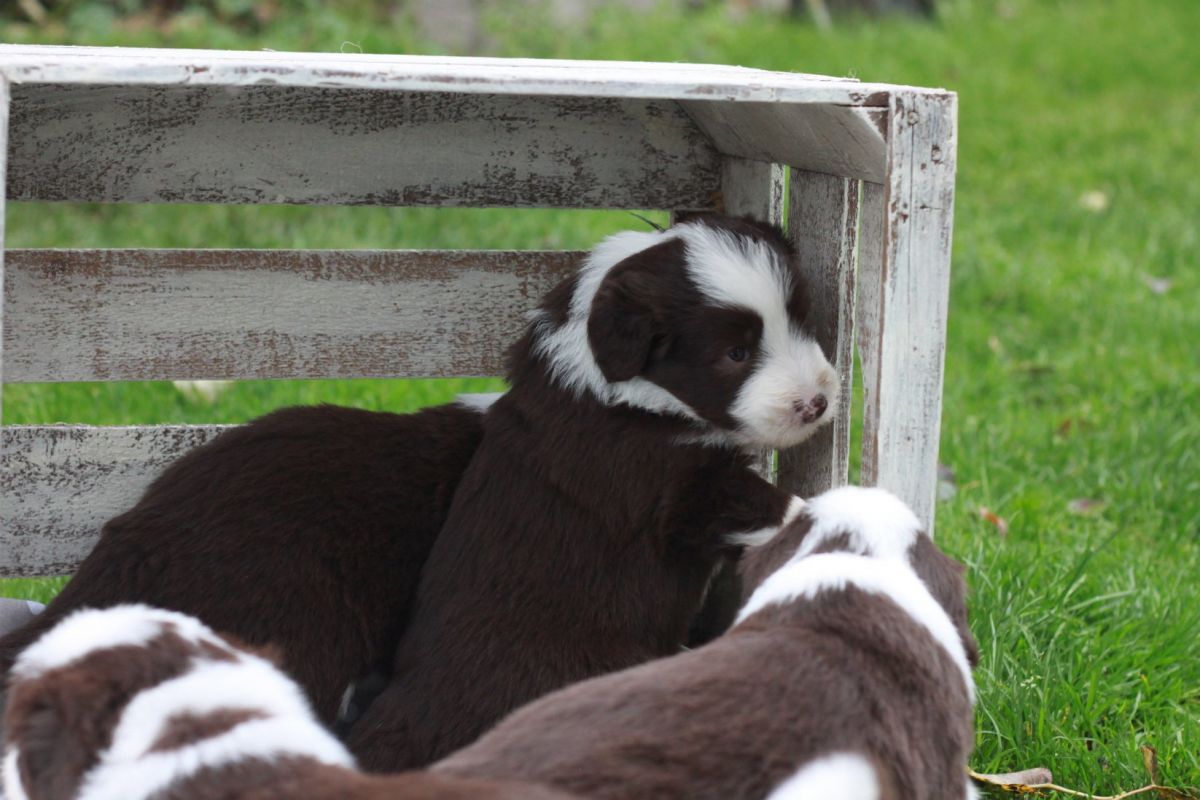 diese Woche ist irgendwie an uns vorbei gerast. Die kleinen Mäuse haben viel gespielt und sind nun auch schon in einem kleinen Teil des Gartens am toben. Viel erlebt und eine Menge an Größe und Gewicht gewonnen. Sie sind alle wirklich sehr brav und schlafen auch schon durch. Das ganze Rudel kümmert sich vorbildlich um die kleine Schar. Jeder hat seine Aufgabe und erfüllt sie mit Eifer.