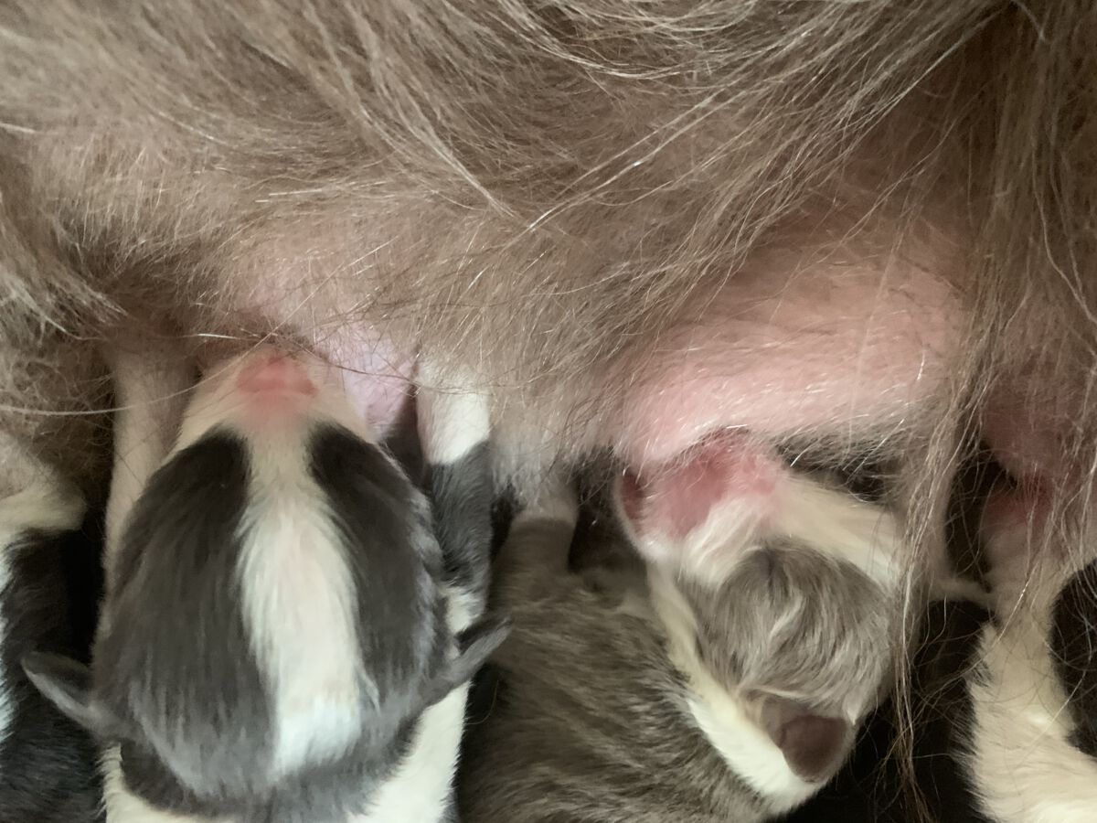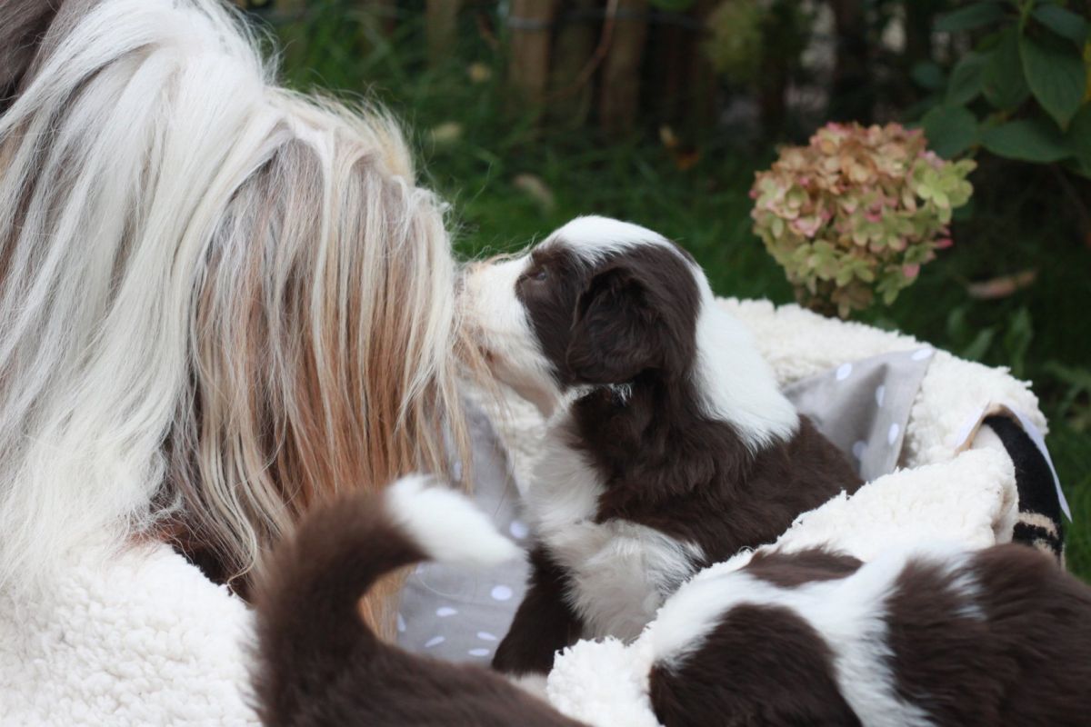 Allen geht es gut und Aliyah ist mal wieder eine total begeisterte Mutter, die sich hingebungsvoll um ihr Schätze kümmert. Ab nächster Woche teilen wir wieder sehr gern unsere Welpenzeit mit Euch.