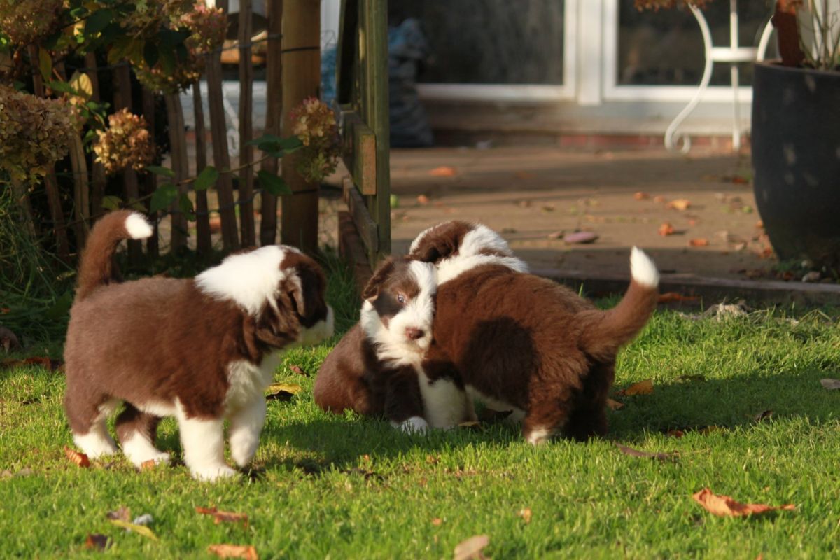 Es ist immer wieder unfassbar, wie schnell 8 Wochen mit Welpen im Haus vergehen. Wir hatten sehr viel Spaß mit unseren wundervollen 7 Brummern. Sie sind richtige Sommerkinder, konnten bis in die späten Abendstunden raus, haben viel in ihrem Minipool geplanscht, gebuttelt was das Zeug hielt und alles Spielzeug gerockt. Wir haben es sehr genossen mit ihnen zu spielen und zu schmusen. Nun sind fast alle zu ihren neuen Familien gezogen. Es war wieder sehr berührend in die freudigen Gesichter zu schauen… auch ein wenig schmerzhaft, das loslassen. Aber wir sind uns sicher tolle Menschen gefunden zu haben. Ghostbuster – aka Samir- bleibt noch ein wenig, bis auch in seinem neuen Heim alles bereit ist. ( wir freuen uns über die Mehrzeit 🙂 )